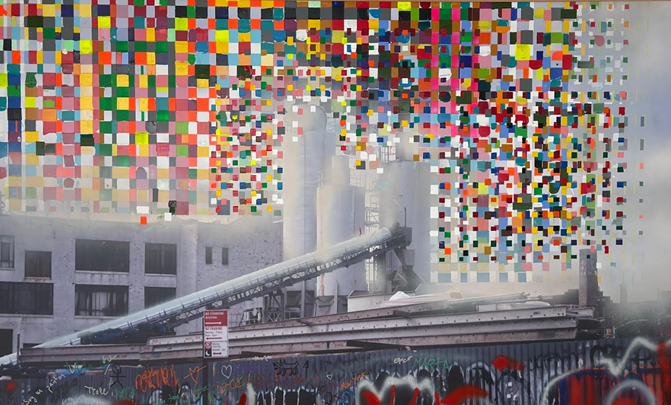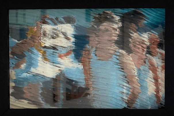 Mientras, Rafael Jiménez se suma a la ola cromática común, transitando en sus procelosas crestas, sumidas en un ritmo infinito congelado, conseguido plasmar por este creador plástico gracias a los materiales utilizados, campos de plastilina y color, que reflejan la resonancia que el ruido emocional, y recuerdos, añaden a la imagen evocada. Son sus piezas golpes visuales percibidos en el encuentro primero, o cuando eclosionan desde los fondos de la memoria. Intensidad y emoción portan las obras de este artista.