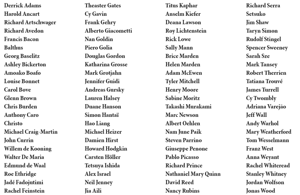 Gagosian Gallery: Fundada por Larry Gagosian, es considerada una de las galerías privadas más poderosas del mundo. Cuenta con múltiples sedes en las principales capitales del arte (Nueva York, Londres, París, etc.) y representa a algunos de los artistas más cotizados.