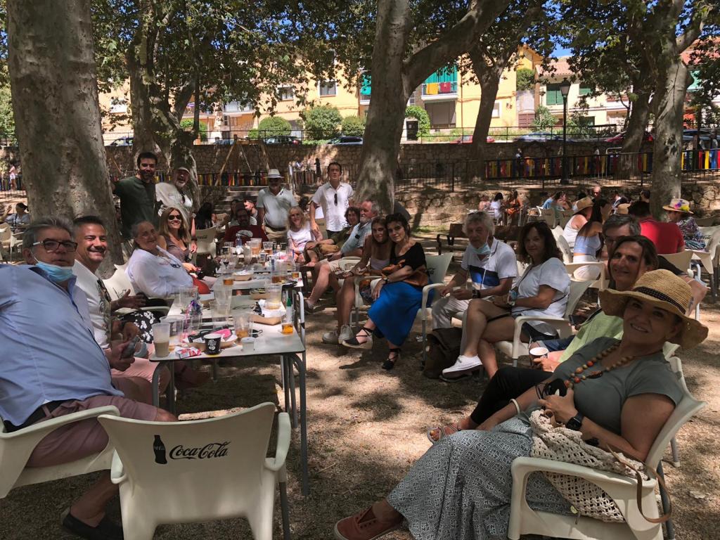 Después de la inauguración de la exposición de las obras de sus alumnos, se juntan para charlar sobre el arte y la pintura.