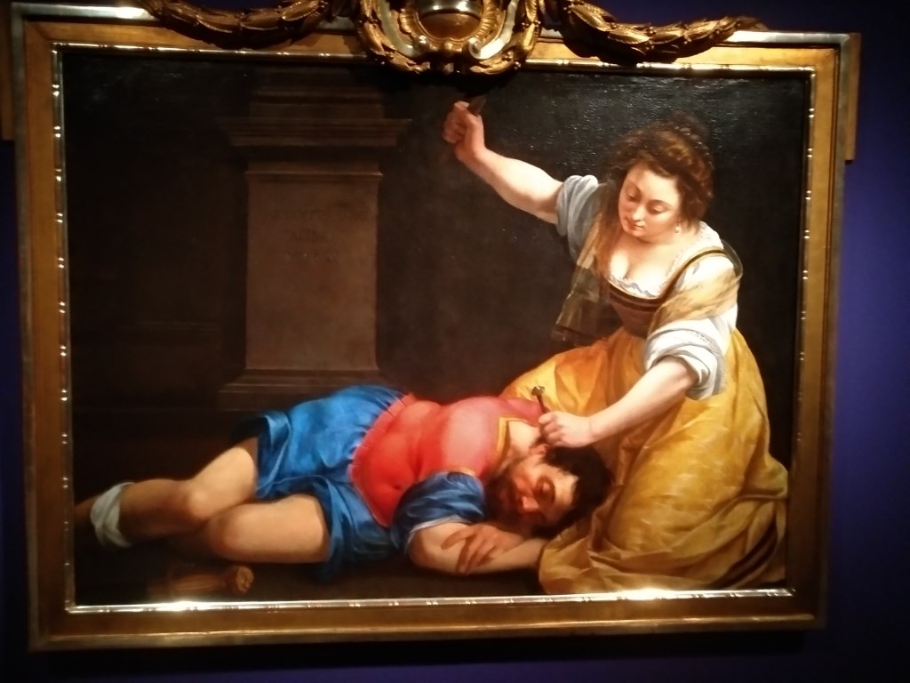 –Pertenece al Barroco y la mayoría de sus obras tienen una gran influencia de Caravaggio. Aprendió a formarse en el taller de su padre. Desarrolló numerosos temas históricos y religiosos, con gran presencia de personajes femeninos. A los 18 años fue violada por su maestro y amigo de su padre, a partir de ese momento, esto marcó su pintura. Tuvo que soportar un juicio durante siete meses, la sometieron a torturas en los dedos y a exámenes ginecológicos, pero siempre mantuvo el testimonio de la violación. El pintor fue condenado a un año de prisión y al exilio. La violencia de algunas escenas de Judit decapitando a Holofernes, ha sido interpretada como un deseo de venganza por la violencia que ella misma había sufrido.