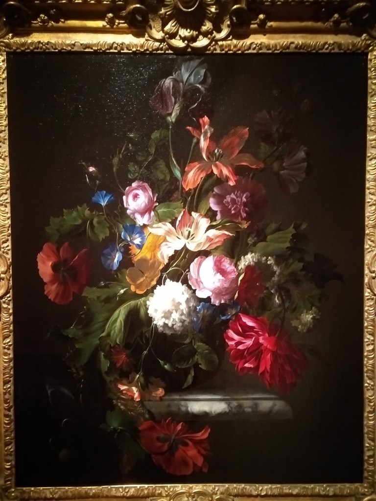 También pertenece al barroco. Se especializó en bodegones de flores. Ella y su hermana habían aprendido con su padre que era anatomista y botánico ya había conseguido reunir una gran colección de rarezas y curiosidades naturales en su casa. Representaron mariposas, insectos y reptiles en los bodegones para dar más vida a sus composiciones. Se casó con un pintor y tuvo 10 hijos punto fue un artista muy renombrada en su época estuvo en cargos muy importantes. Vivió 85 años. En este bodegón logra crear una composición equilibrada, en la que las flores y los frutos se entrelazan de manera natural y los insectos se mueven con libertad. Los tonos cálidos y fríos se combinan creando una sensación de profundidad y movimiento en la obra. La luz resalta ciertas zonas de la pintura creando un efecto de luces y sombras. Su obra fue muy valorada durante su época, pero después de su muerte cayó en el olvido y solo en el siglo 20 fue redescubierta y valorada como una de las grandes artistas del barroco holandés.