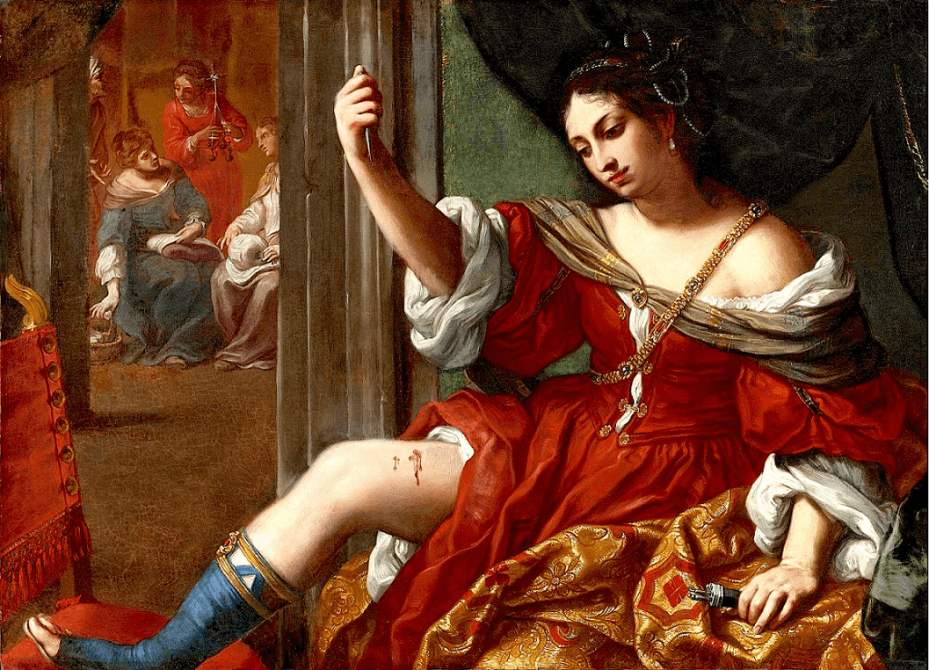 Elisabetta Sirani. «Porcia hiriéndose en el muslo». S. XVII