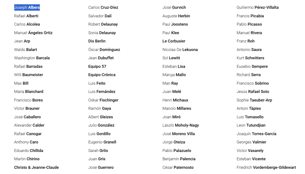 Jorge Abbad-Jaime de CordobaJacobo Alcalde GibertFelipe AlonsoJose Manuel CajalAlejandro CarpinteroFrancisco CarrilloGerard CastellvíAndres CastellanosManuel CastilleroAntonio CazorlaJose Luis CeñaAmaya Corbacho MartínMaria José CortésJuan Manuel CossioMargarita Cuesta PamiesAngel DeangelAntonio de ÁvilaPedro del ToroRosa DíazJordi Díaz AlamàMiriam EscofetIgnacio EstudilloJosé FrancésIván Franco FragaJorge GallegoJuan Carlos Gil GutiérrezGolucho (Miguel Angel Mayo)Manuel Huertas TorrejónJaime ValeroDino VallsManuel Hurtado mateosPaco LafargaCarmen MansillaAlejandro MarcoCarlos Marijuán, Antonio de Felipe, Fumiko Negishi