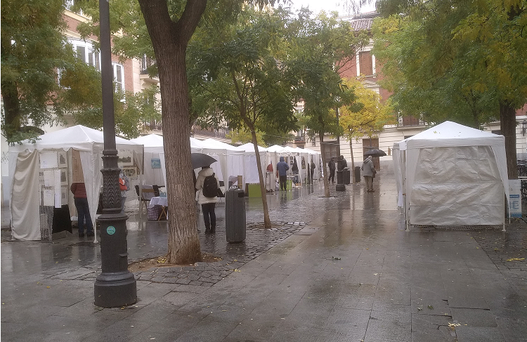 35 pintores madrileños exponen sus obras al aire libre, simulando un pequeño Montmartre en Madrid. Podremos encontrar acuarelas, óleos, acrílicos, plumillas, dibujos.