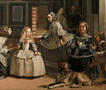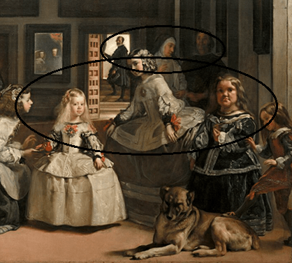 – ¿Por qué en un cuadro realizado por un pintor de Palacio por encargo real, un cuadro de la realeza, aparece retratado el propio artista? ¿ Qué está pintando Velázquez, o a quién? ¿Cuál es el mensaje?-